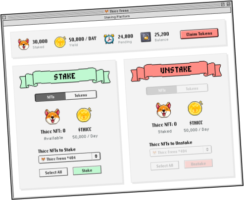 Stake your Thicc Frens NFT to earn passive income. The longer you stake, the more $THICC you earn.