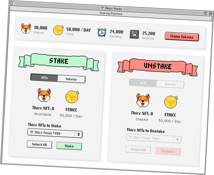 Passively earn $THICC tokens by staking your Thicc Frens NFT.